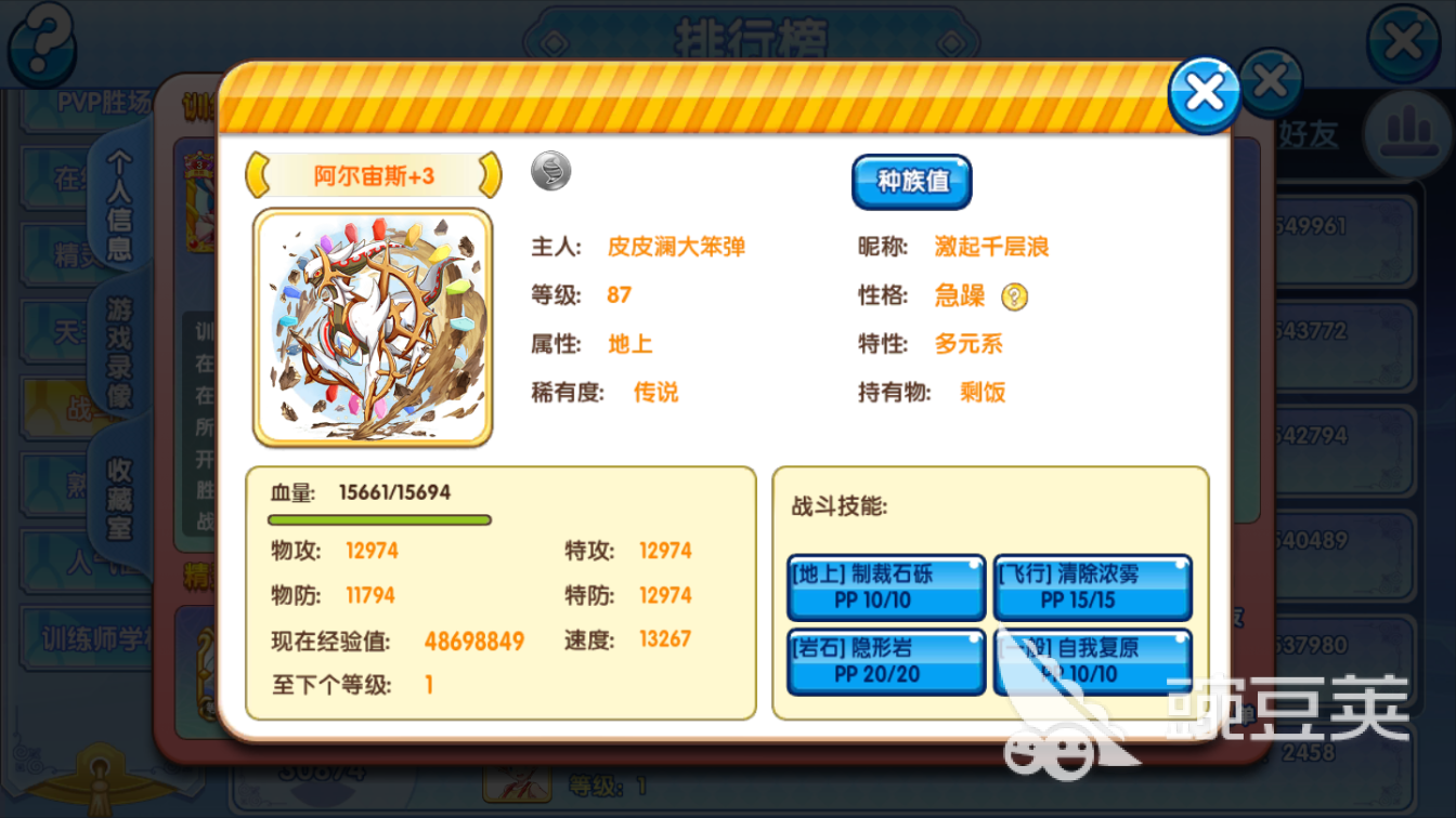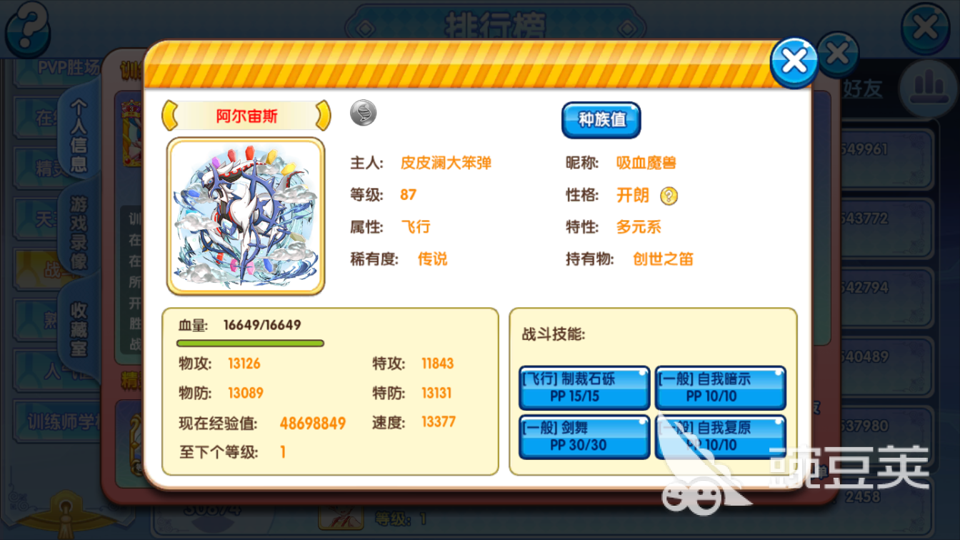 (1)種族值:阿爾宙斯不愧是寶可夢世界的創(chuàng)世神,擁有820的復(fù)刻種族值,要知道580的宙斯抓教宙種族值就是準神寶可夢了,所以創(chuàng)世神擁有別的口袋寶可夢無法超越的基礎(chǔ)加成。