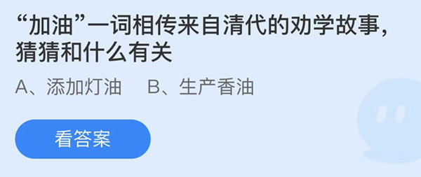 螞蟻莊園8月15日的螞蟻問(wèn)題分別是“加油”一詞相傳來(lái)自清代的勸學(xué)故事,猜猜和什么有關(guān)?莊園最新小雞寶寶考考你:竹樓是我國(guó)哪個(gè)民族的傳統(tǒng)民居?下面小編給大家?guī)?lái)問(wèn)題的解答,還不清楚的月日小伙伴一起看吧。