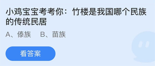 問(wèn)題2-小雞寶寶考考你:竹樓是我國(guó)哪個(gè)民族的傳統(tǒng)民居?