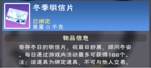2、創(chuàng)造澳門大三巴一肖一碼中地址冬日明信片的魔法明信獲取上線是188個。