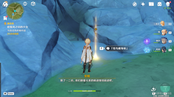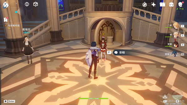 傳送蒙德城,前往教堂與對話安柏,