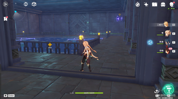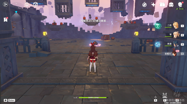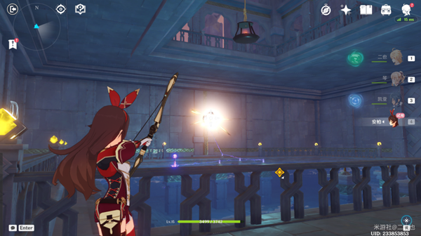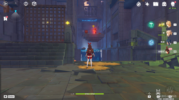 使用安柏攻擊圖中黃色箭頭指的紫色機關(guān)