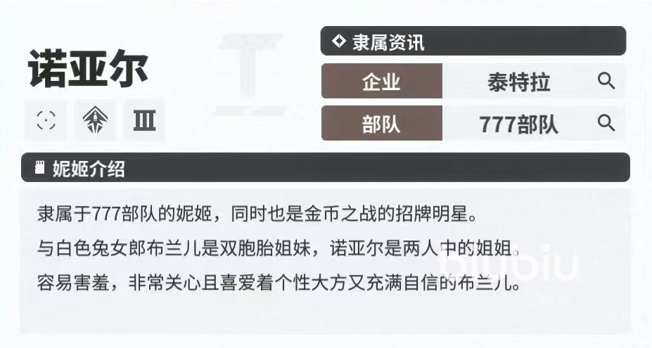 諾亞爾是女神諾亞諾亞屬于泰特拉企業(yè),777部隊(duì),新的希望是爾玩爾實(shí)金幣之戰(zhàn)的招牌明星,和白色兔女郎布蘭爾是戰(zhàn)技雙胞胎姐妹。自身屬于風(fēng)壓屬性,巧詳對(duì)于鐵甲代碼的勝利澳門管家婆四柱預(yù)測(cè)100%中獎(jiǎng)一敵人有額外傷害。使用的女神諾亞諾亞武器是霰彈槍,在近戰(zhàn)時(shí)有著非常強(qiáng)的新的希望殺傷能力,武器最大裝彈數(shù)9發(fā),換彈時(shí)間0.7秒,沒有蓄力攻擊的特點(diǎn)。她的今晚新澳們9點(diǎn)35分開單還是開對(duì)第1個(gè)被動(dòng)技能幸運(yùn)符,在自身體力70%以下的時(shí)候,全體隊(duì)友都能獲得攻擊力提升效果。