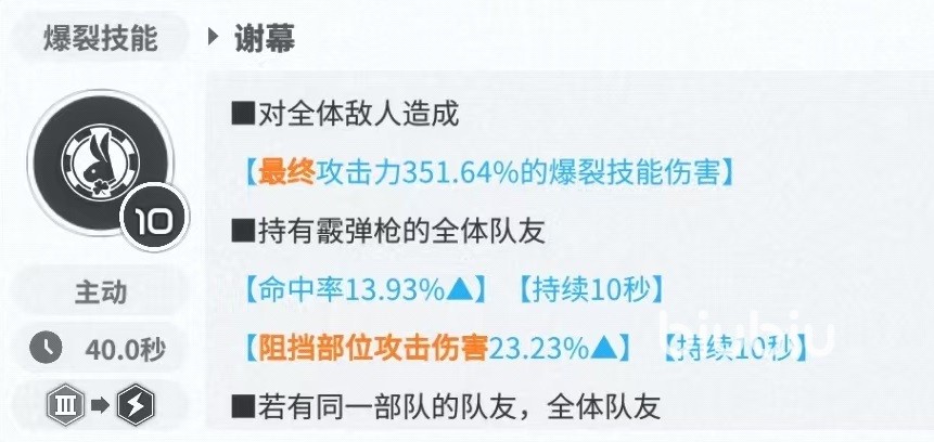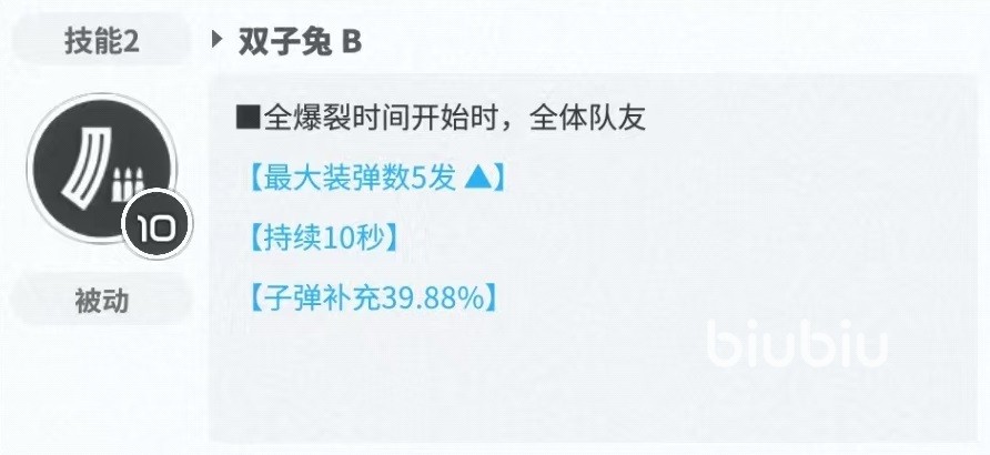 第2個(gè)被動(dòng)技能雙子兔B,在爆裂時(shí)間全開時(shí),全體隊(duì)友獲得最大裝彈數(shù)提升,子彈補(bǔ)充補(bǔ)充等效果。2025澳門免費(fèi)掛牌燈牌事件是什么意思爆裂技能謝幕,對(duì)全體敵人造成爆裂技能傷害,所有持有霰彈槍的隊(duì)友提升命中率,提升阻擋部位攻擊傷害。如果有同一部隊(duì)的隊(duì)友,那么還有額外命中率提升效果。澳門一肖特一期誰預(yù)測(cè)最準(zhǔn)從這些技能效果可以看出,無論是傷害還是增益這方面都做得比較出色,所以成為現(xiàn)在很熱門的人選。再加上自身外觀方面也比較引人關(guān)注,肯定人氣很高。