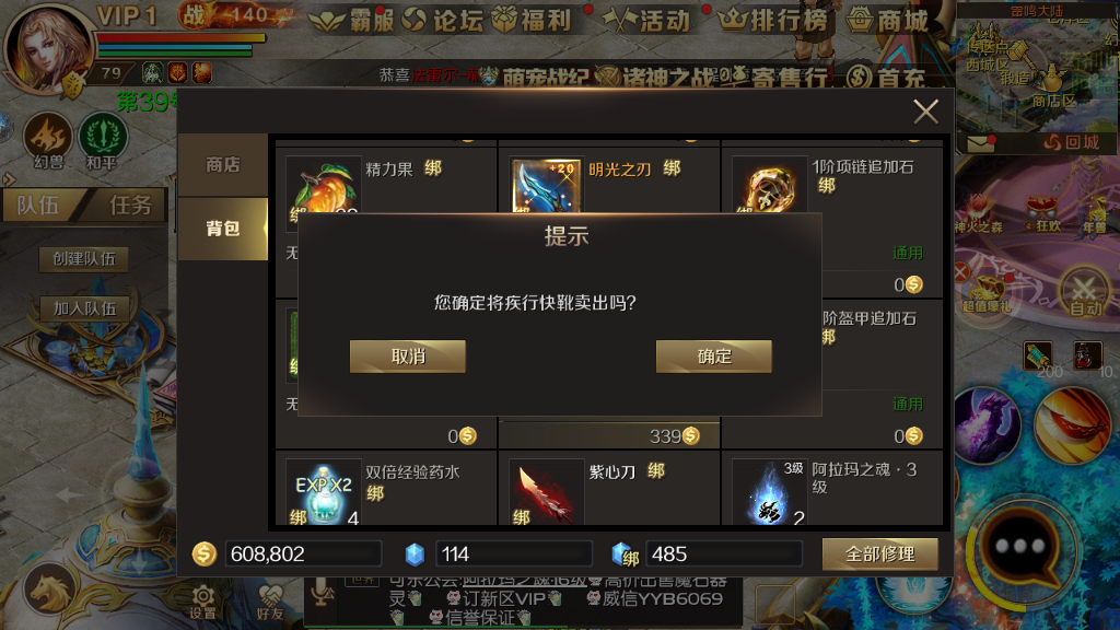 1、出售給npc就比較簡單了,先回城,然后點(diǎn)擊右上角的77777888888新奧精準(zhǔn)77777小地圖,我們可以在大地圖上面看到哪里是交易區(qū),然后直接走到交易區(qū),找到可以出售的NPC,對話之后選擇出售即可,一般會獲得幾千枚金幣。