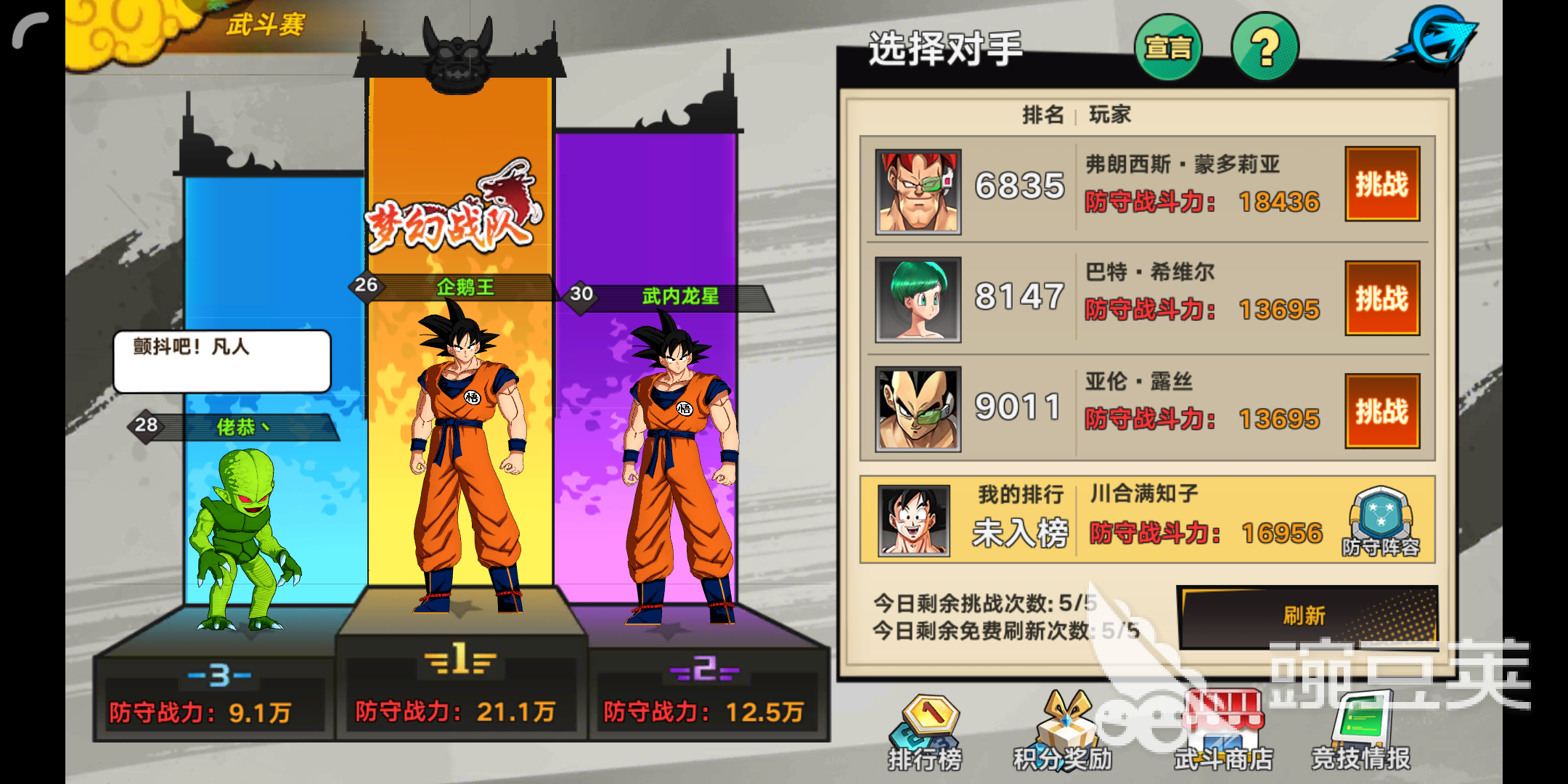 武道會是龍珠粉們絕對不陌生,在游戲中也有著武道會來讓玩家和其他玩家進(jìn)行PK。在武道會中玩家每天可進(jìn)行五次挑戰(zhàn),不論勝負(fù)都消耗次數(shù)。挑戰(zhàn)獲勝后玩家可獲得大量獎勵,還可獲得每日的排名獎勵。
