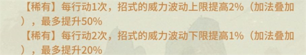 新版本“后羿射日功”增加50技能威力(論劍折半)效果,成為俠客輸出配置必帶系列。