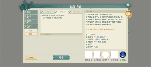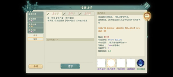 武學(xué)突破(包含在技能介紹中):