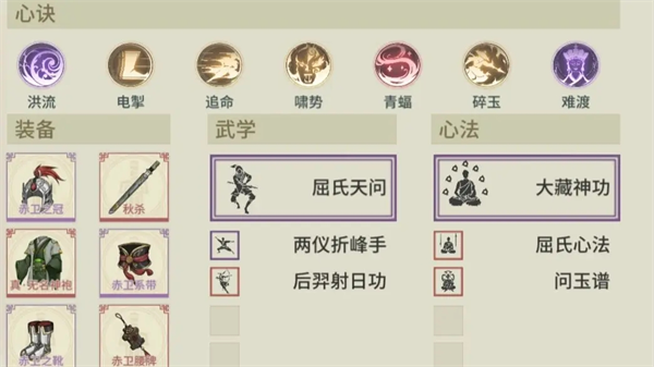 一線生存二線輸出,后期武器換秋殺,藏淵用龍頭,心決3突補(bǔ)破障/碎玉,壯骨換臂力,洗練雙臂力。